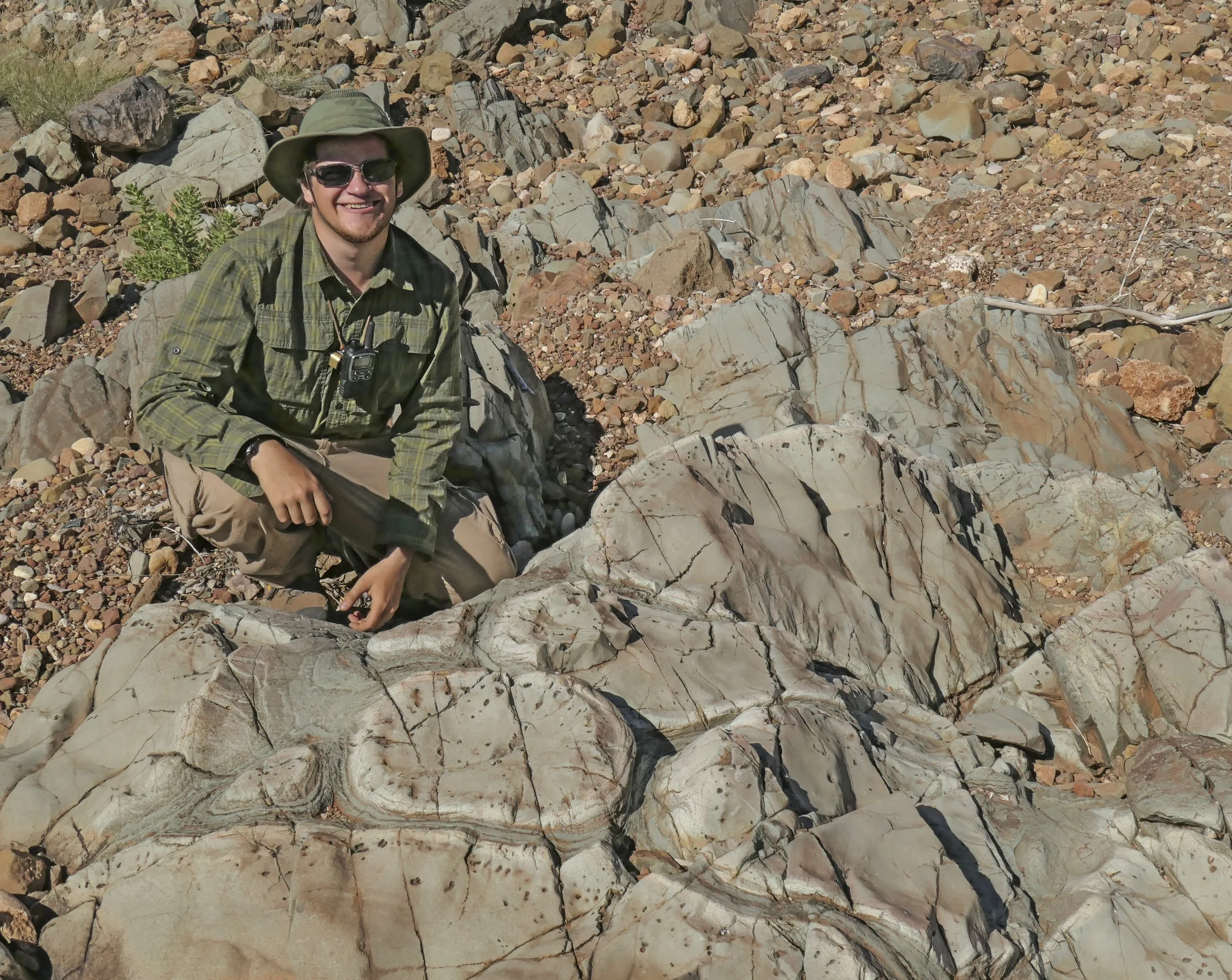 Brenner is a Postdoctoral Associate in the Department of Earth & Planetary Science at Yale University. The image shows him with petroglyphs made by the ancestors of the Nyamal people in the East Pilbara, Western Australia.