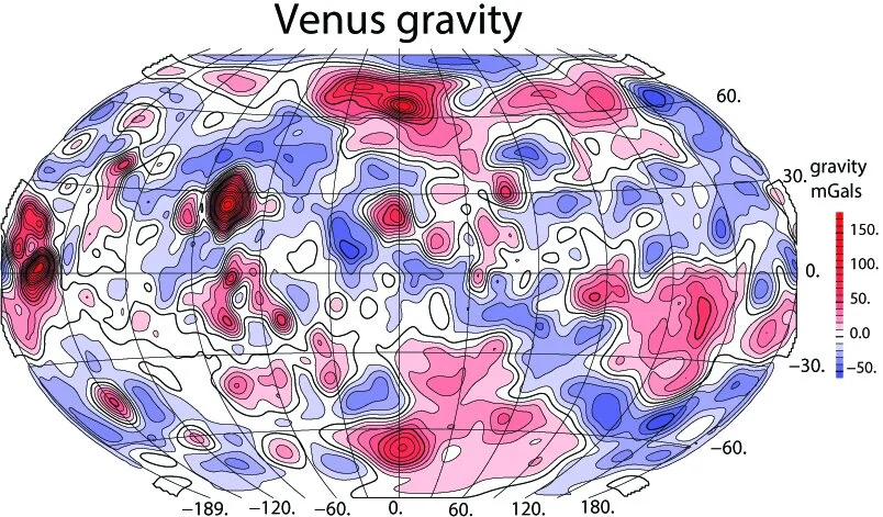 Map of the gravity of Venus inferred from the Doppler measurements of the radio signals from Magellan.
