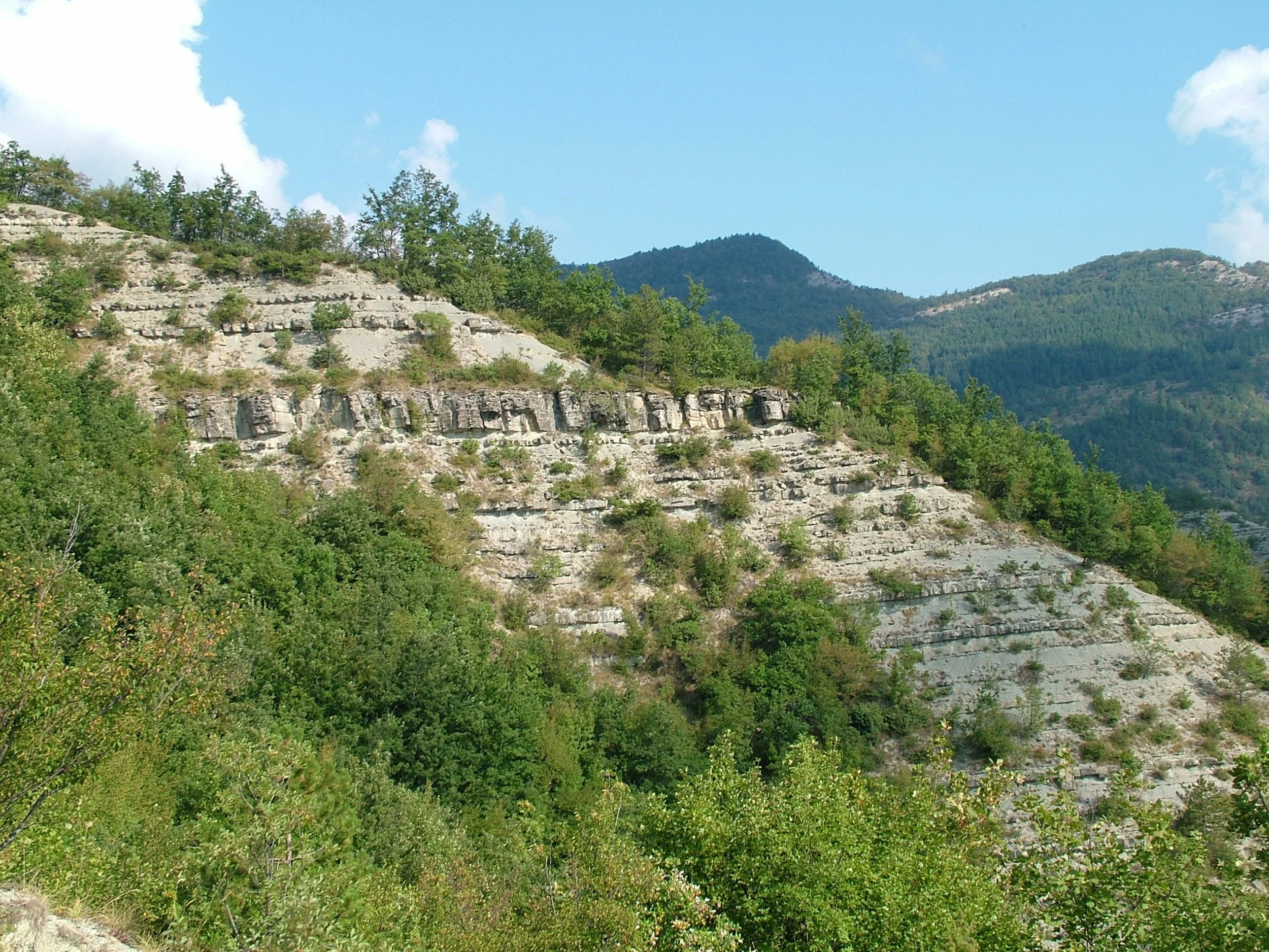 Outcrop of turbidites in the Italian Apennines showing the repeated bedding draped across an entire mountainside.
