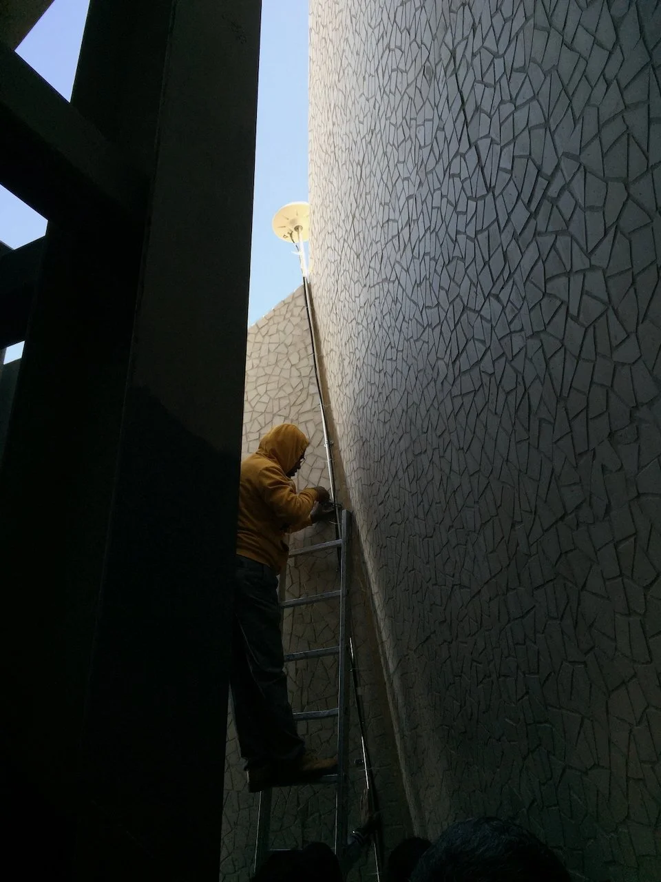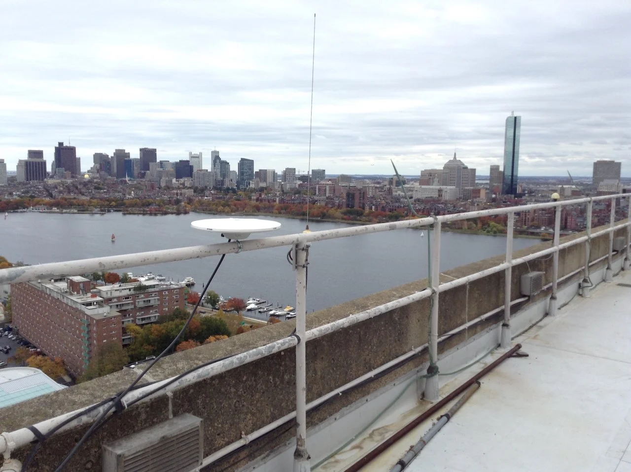 Testing a GPS system on the roof of a tower on the MIT campus.