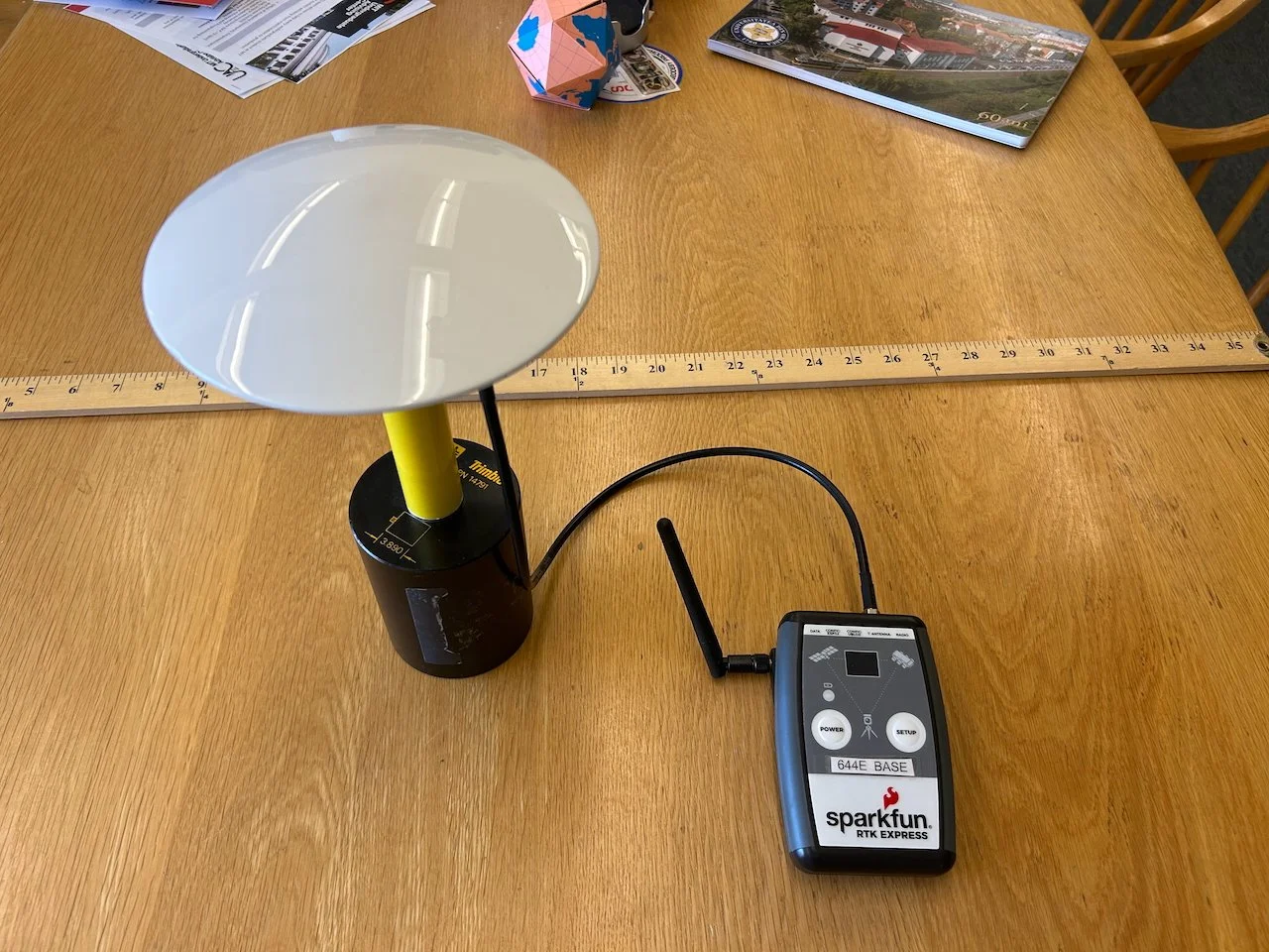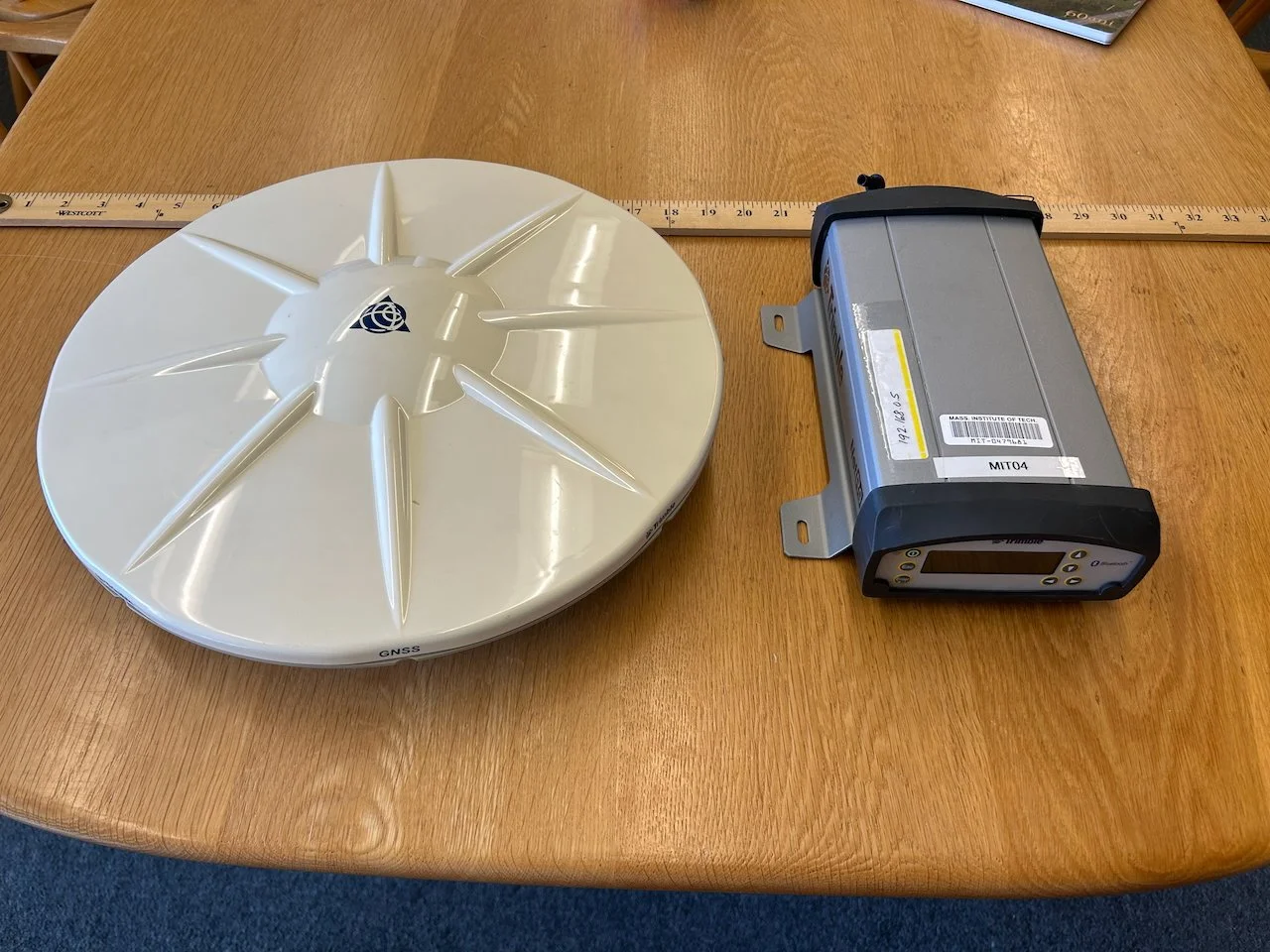Expensive GNSS receiver costing about $20,000. The disk shapes of the antennas are covers that partially block signals from ground reflections. The larger the ground plane, the better the signal blockage.